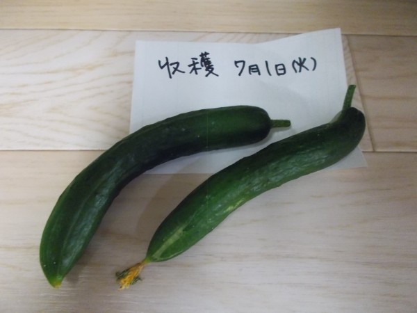 こ~んな小さいキュウリも、愛情込めて育てれれば、ほ~らこんな立派な