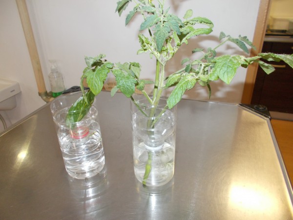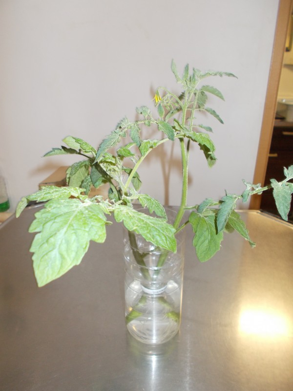 サイズにまで成長! トマト????だって(トマトかキュウリか知らんけど)水栽培で
