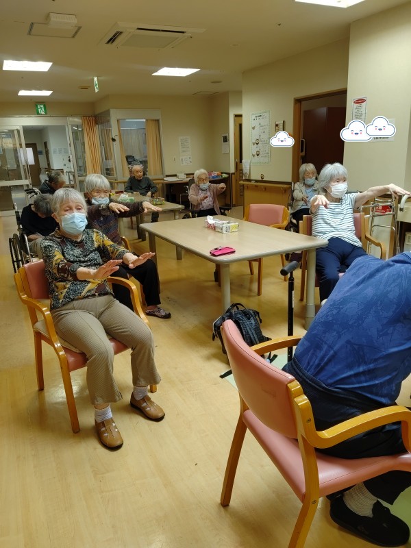 トレーナーの掛け声のもと、皆さん元気に運動に励まれています。