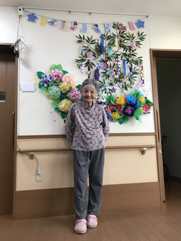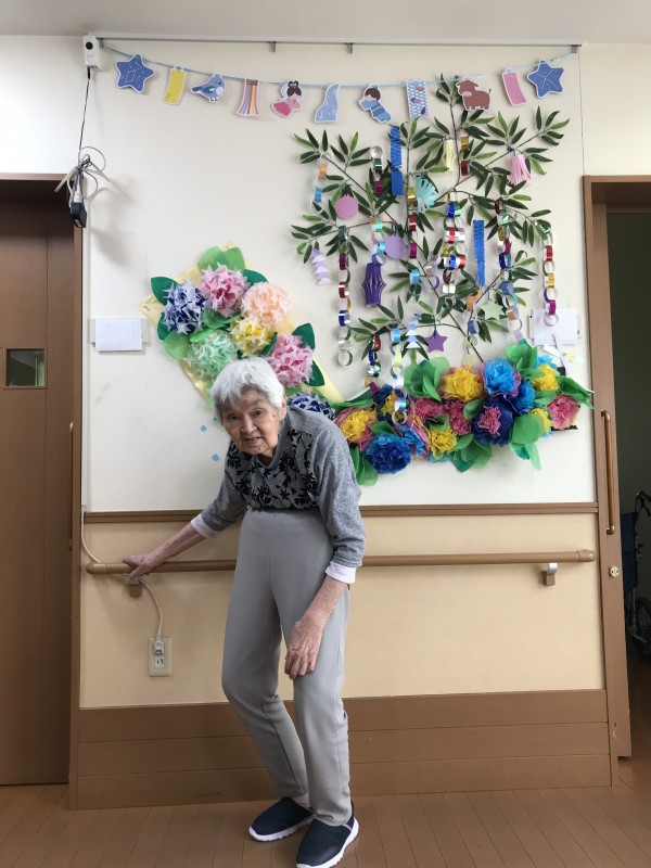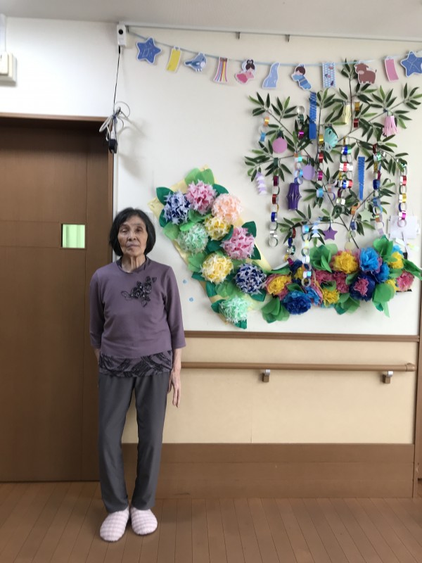 最後は、七夕飾りの前で記念にパチリ(^_-)-☆