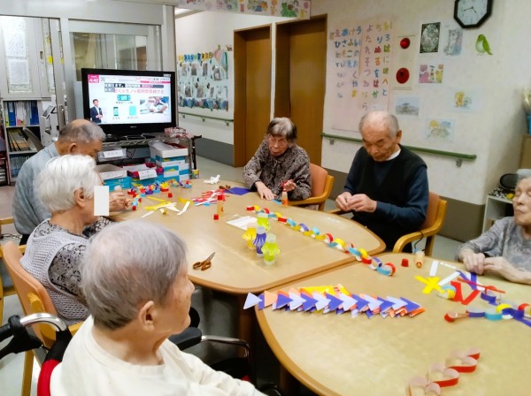 ご入居者様と一緒に飾りをたくさん作りました☆ド派手に飾り付けしちゃいましょうヾ(≧▽≦)ノ