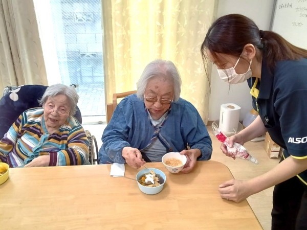準備の時点で「早く食べたいね」とワクワクしていたご入居者様たち。