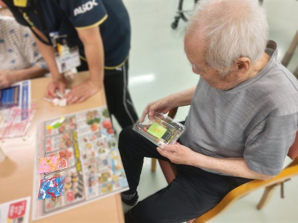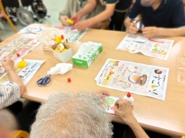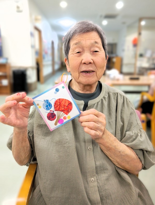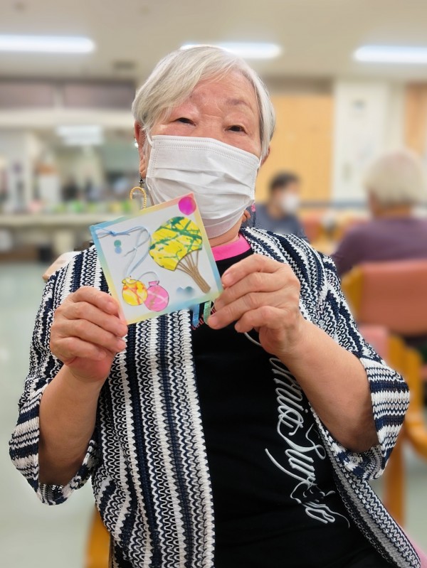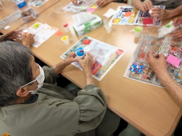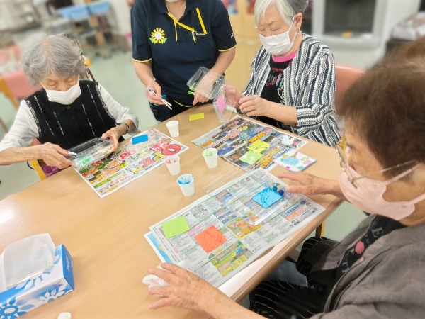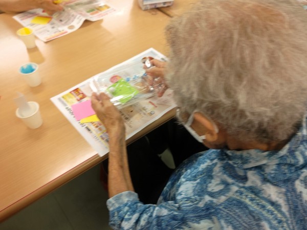プラスチックケースに1枚づつ入れ、絵の具で模様をつけていただきました!