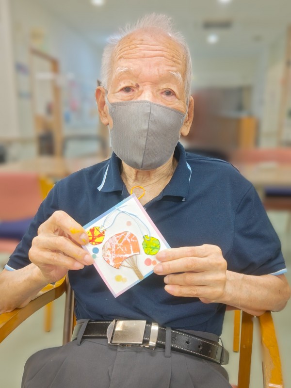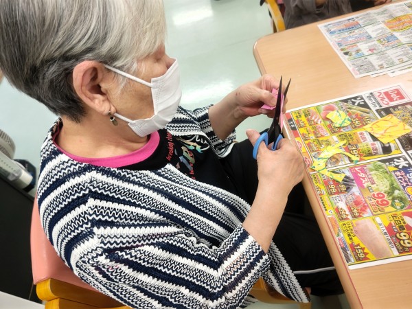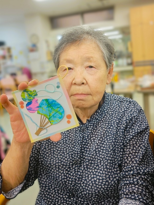 白、青、赤、黄、黄緑、橙、水色の色画用紙から3種類選んでいただき