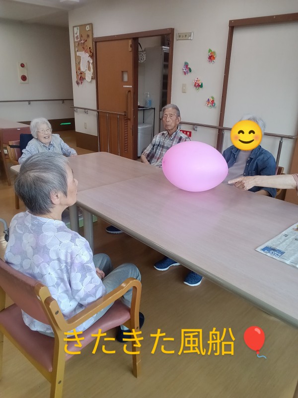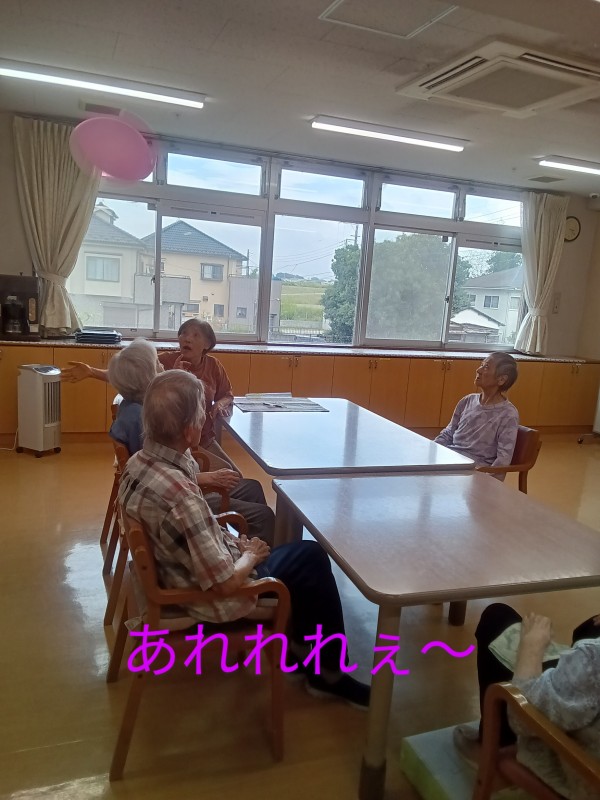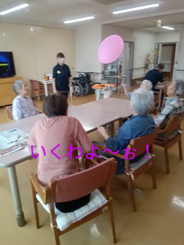 今回は、午後のひと時に風船バレーの様子です。リクリエーションと言えば風船バレーを行う施設が多く見受けられます、何故か?それは風船バレーを行うことにより沢山の機能向上が見られるからだと思います。風船を目で追う事により動体視力、空間認識能力、風船を打ち返す事により手足の運動にまた声の掛け合いをすることによりコミュニケーション能力の向上などが期待されます。でも私的にはご入居者様が笑顔になって頂けるのが1番だと思っています。