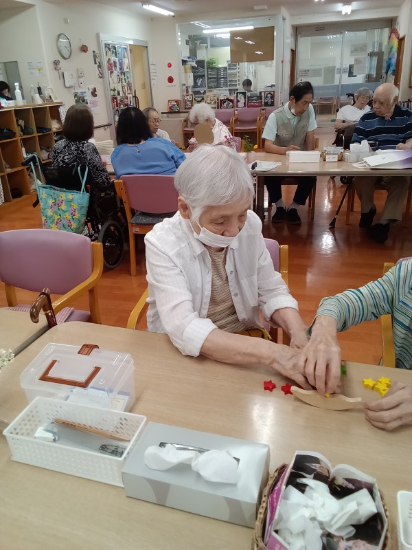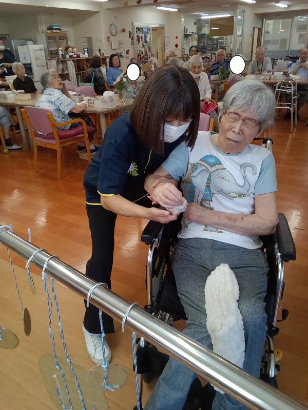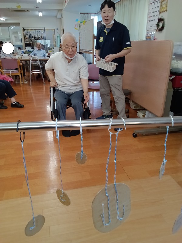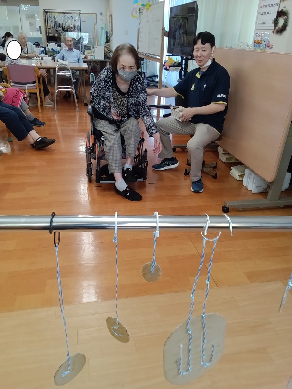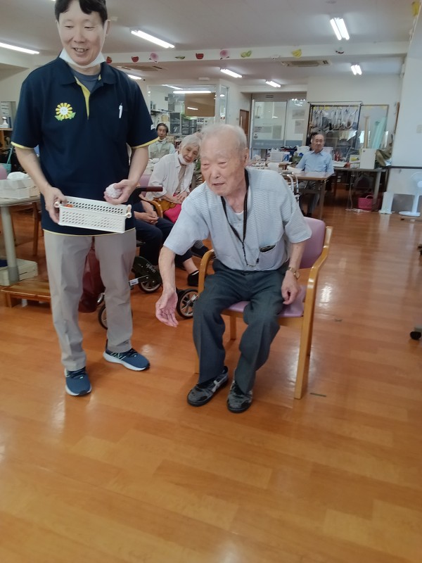 1人8球お手玉を投げて当たった得点の合計点で勝敗を決めています。