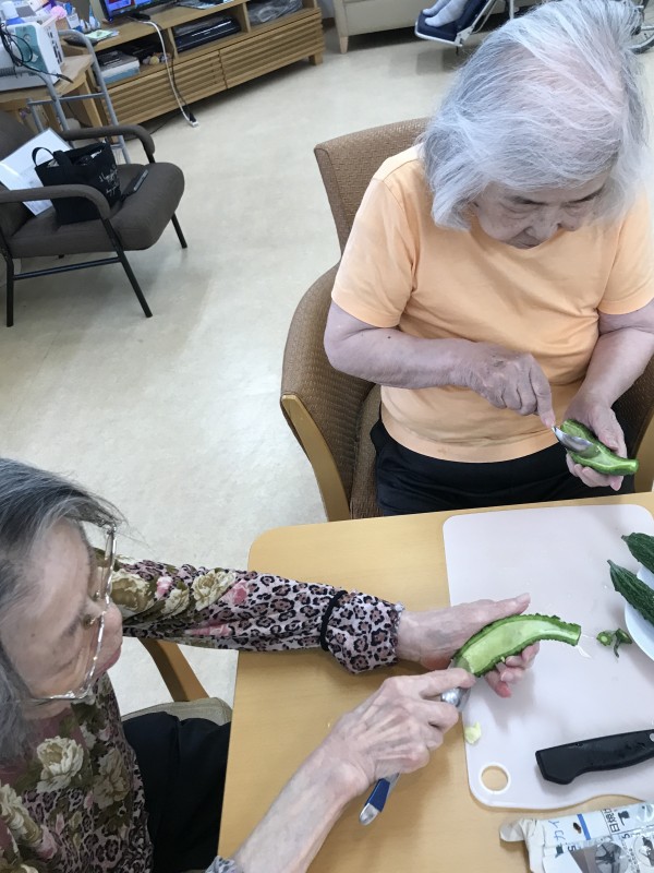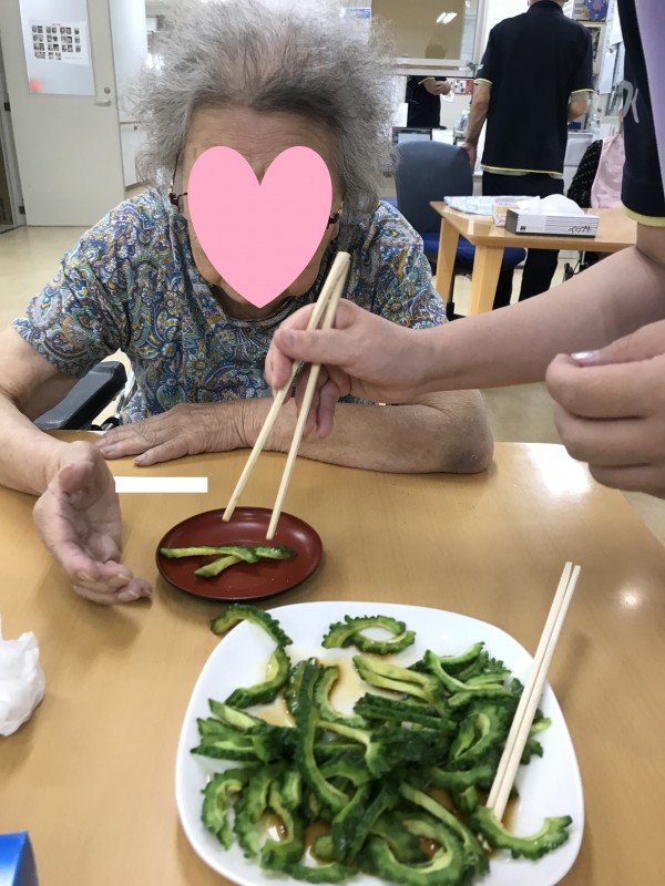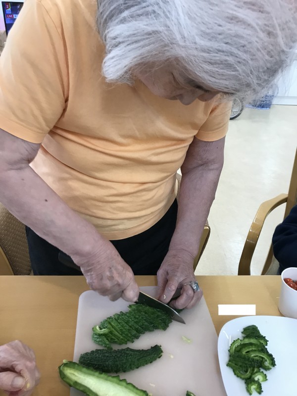 立派にできたゴーヤをみんなで一緒に調理します。