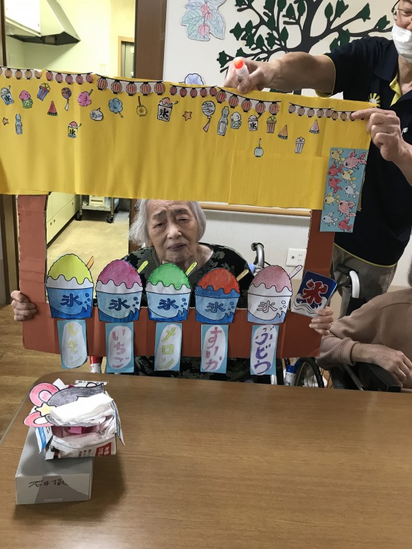 と思うままに昔を思い出しながら絵の具で絵を塗ったりしています。今回は夏をテーマに、かき氷の屋台を制作しました。