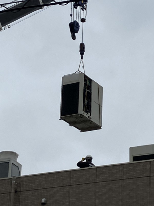 共有エアコン交換中!! 暑い夏も「問題ありません!!」