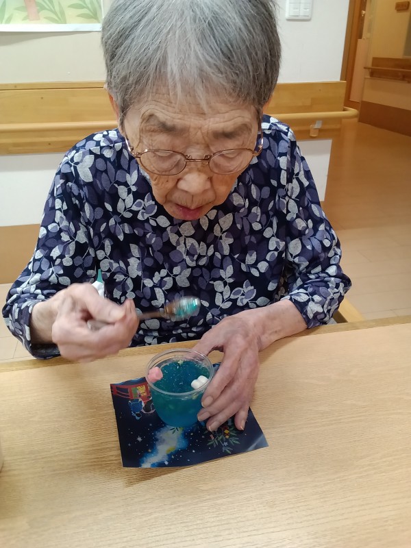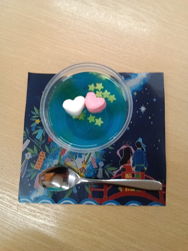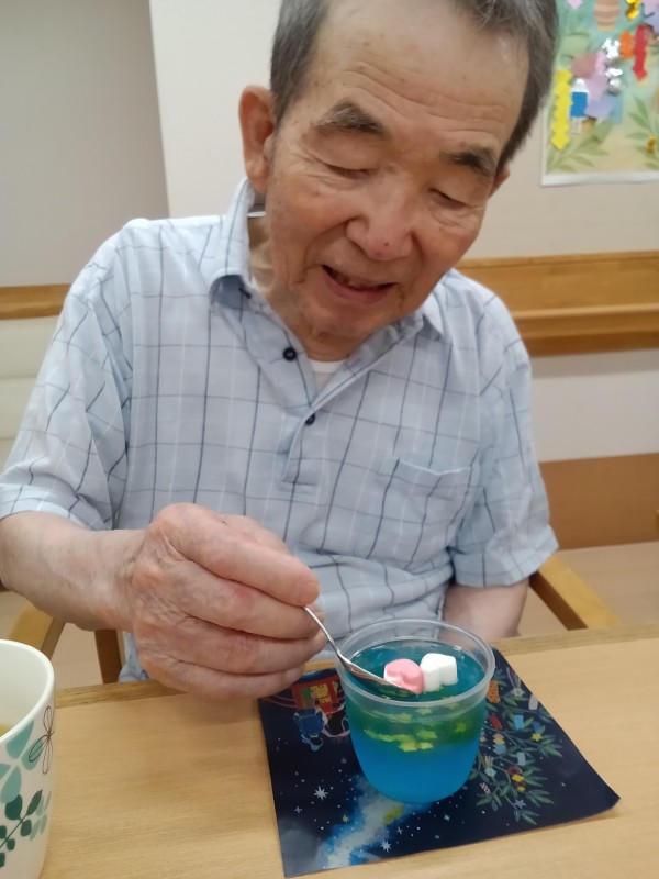 ☆.。.:*・°☆おやつには、天の川をイメージした七夕ゼリーをご提供いたしました☆♡´-`)