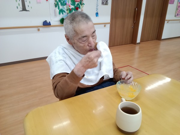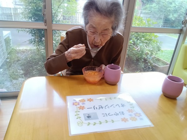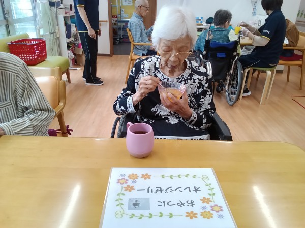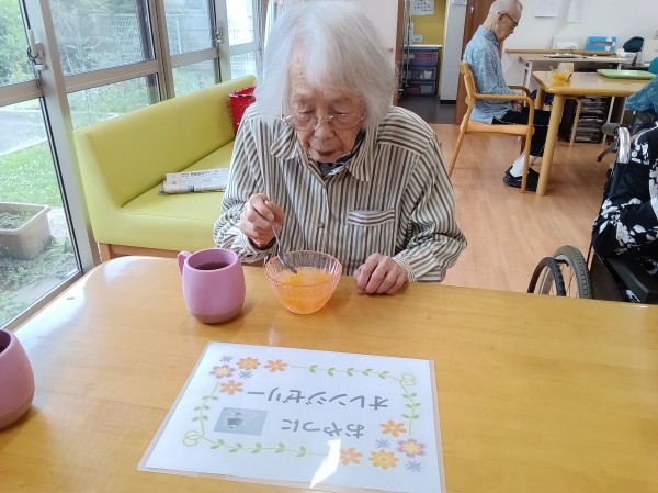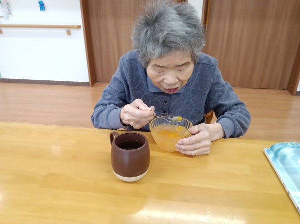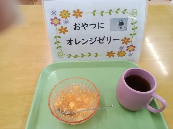 おやつにオレンジゼリーを作り召し上がられています( ^ω^)・・・
