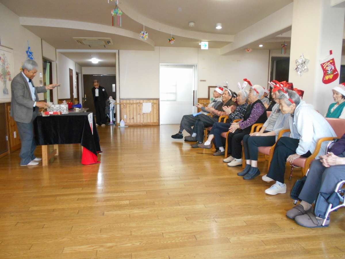 開幕した介護付有料老人ホームすこや家大宮日進のクリスマス会。