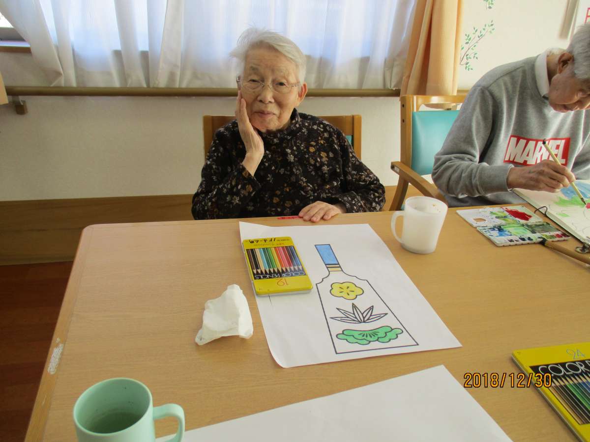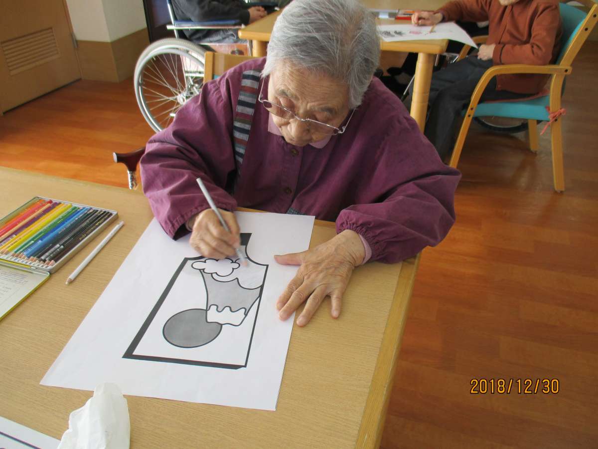 ご利用者様とスタッフで、「一年絶つの早いね~」話しながら色を塗っていました。来年も利用者様が楽しんで貰える