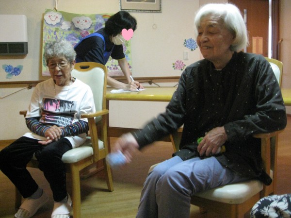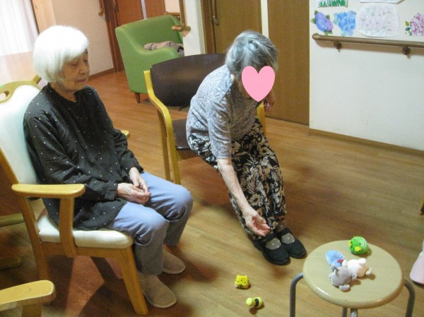 椅子の上にお手玉を投げてみてくださいね。