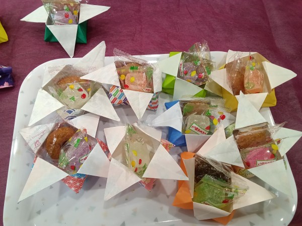 おやつ入れで作った折り紙の入れ物がとても好評で、皆さんお持ち帰りになり