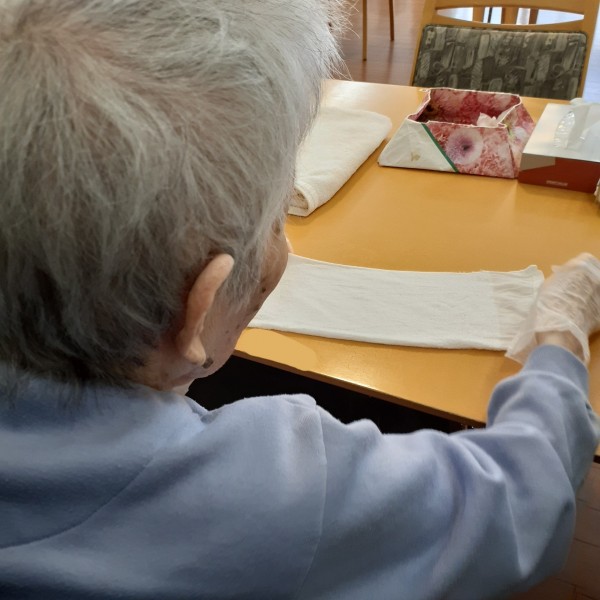 “おしぼり作り”を 利用者様に手伝って