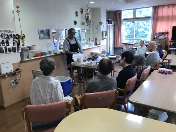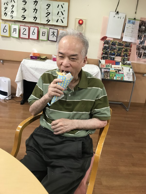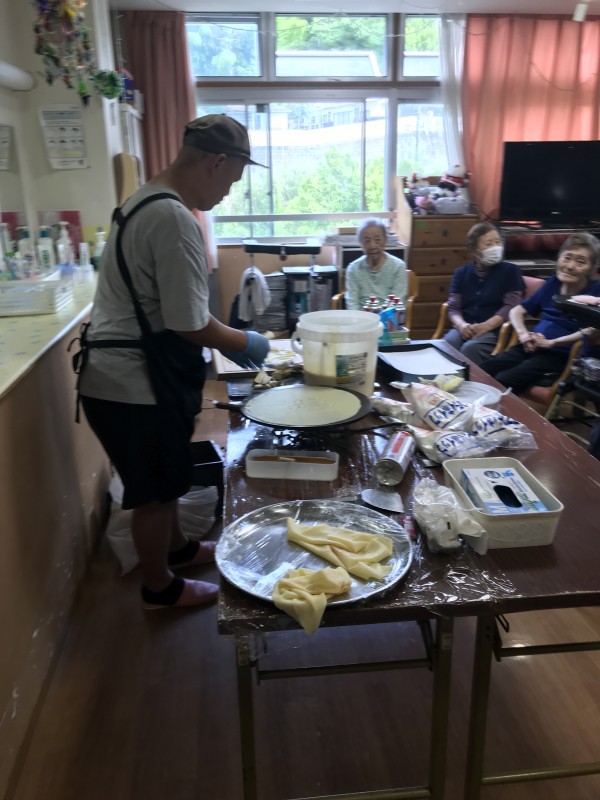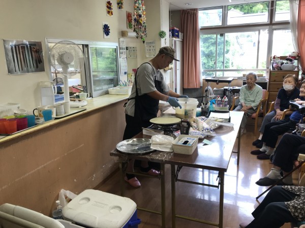 皆様、こんにちは。認知症対応型グループホームみんなの家・横浜三保2介護ブログをご覧下さりありがとうございます。6月中の事にて少し月日を遡りますが、クレープ屋さんが今回もホームに来て下さったので様子を伝えていきます