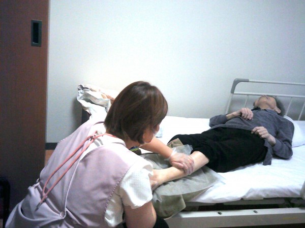 シニアセラピー施術を受けておられるご様子です( ^ω^)・・・ 横になっていると楽で気持ちが良いわ? とのことです。