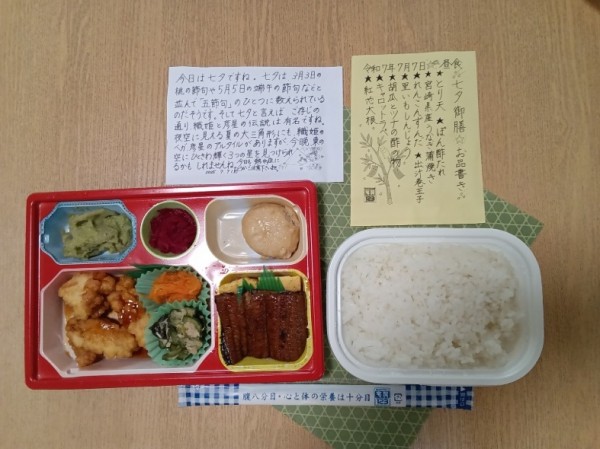 こんにちは、グループホームみんなの家川崎新百合ヶ丘の介護ブログです。前回紹介しました七夕レクリエーションの後は、七夕用にお弁当をご用意させていただきました。皆様普段にもまして食欲旺盛なご様子でした。