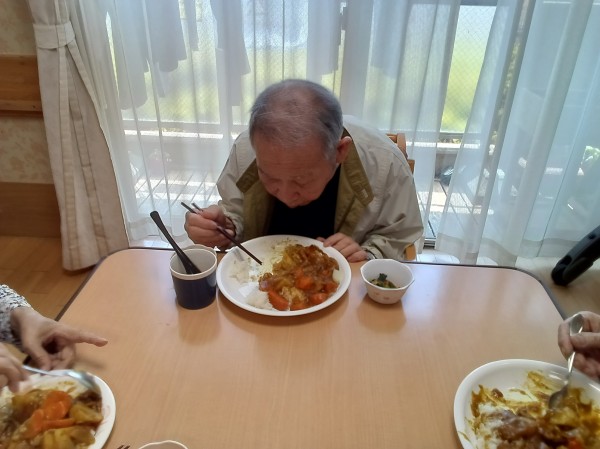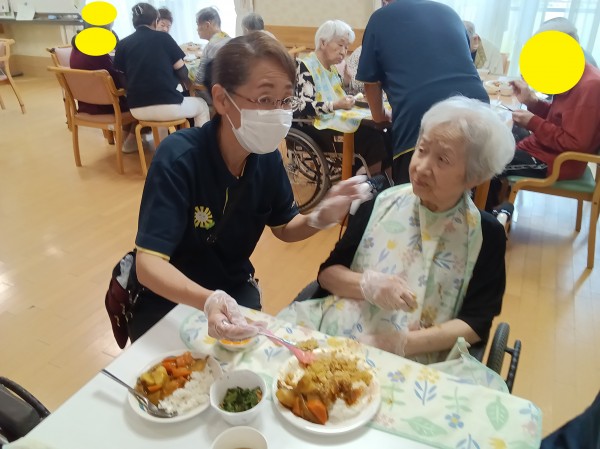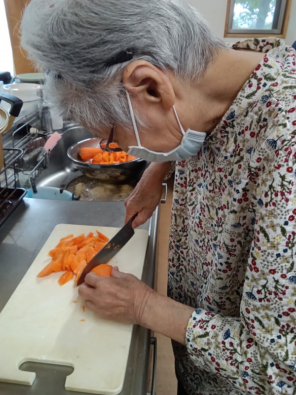 6月は『避難訓練とカレー作り!』と題しましてカレー作りのレクリエーションの最中に火災が起きた想定で避難訓練を行いました。