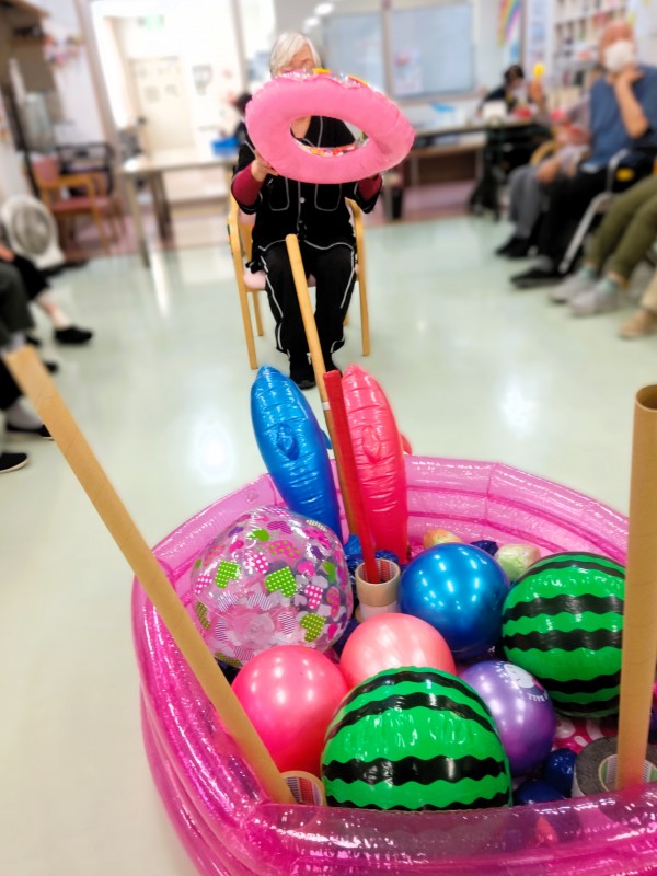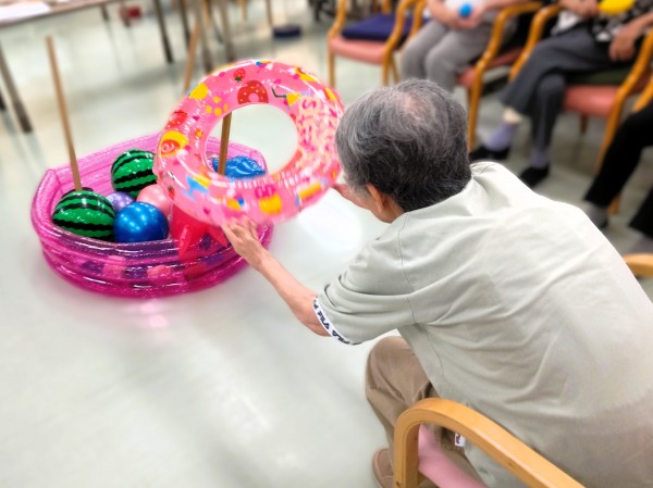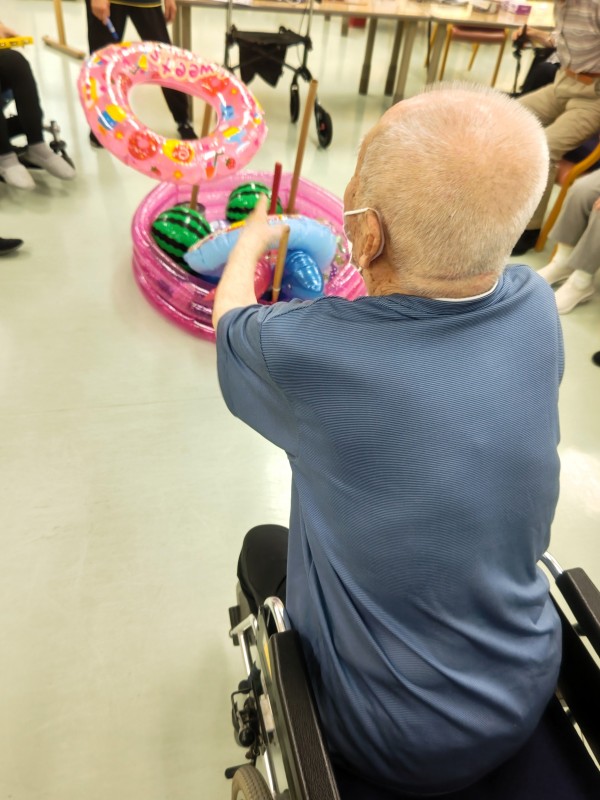 輪投げの要領で、できるだけ高得点を狙って浮き輪を投げていただきました!
