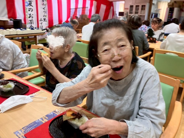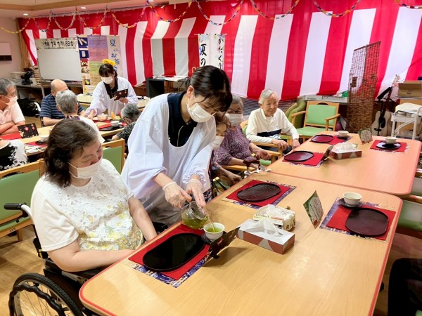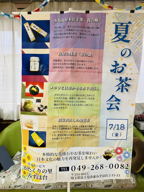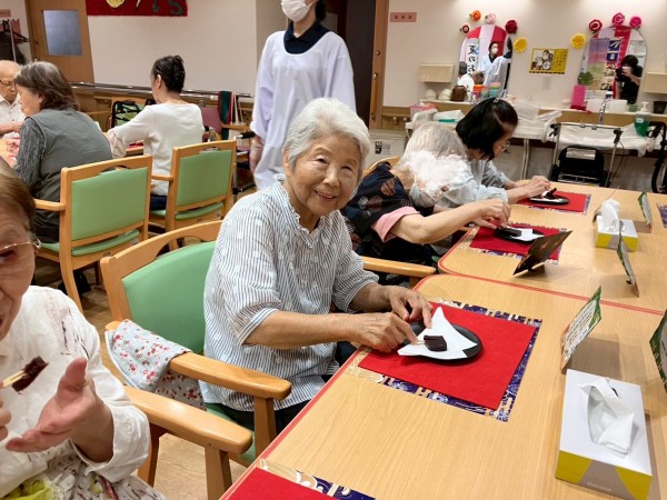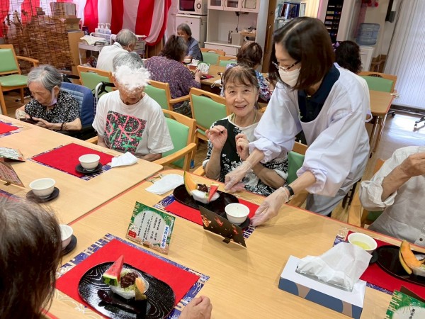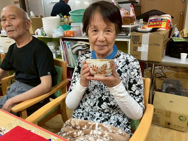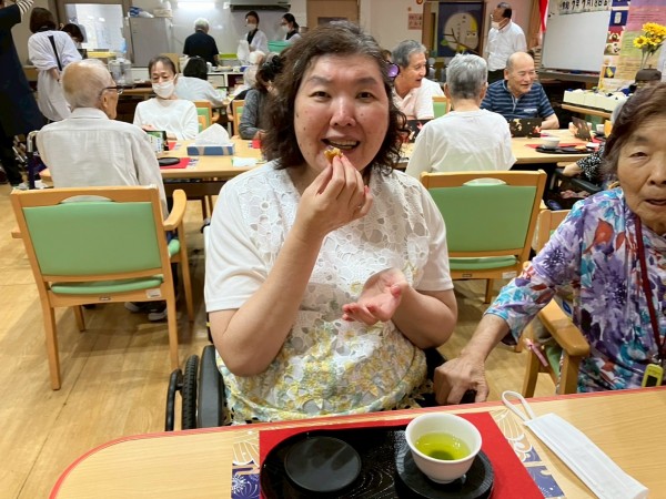 「虎屋の羊羹と抹茶などデイサービスで本格的に味わえるのが本当に素晴らしいですね。どれも美味しくて凄く良かったです。また次回も楽しみだわ〜」