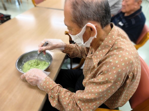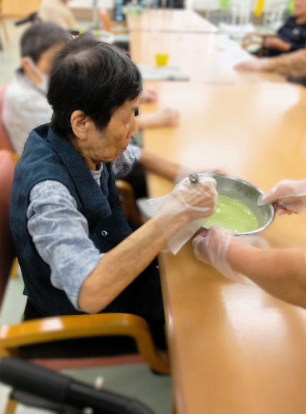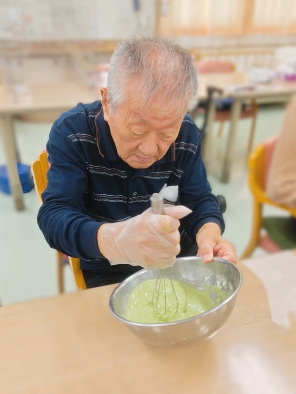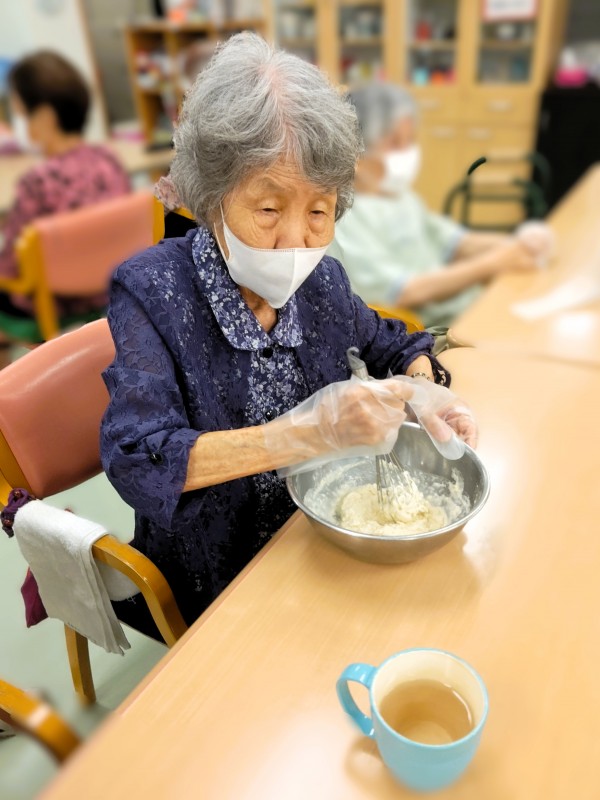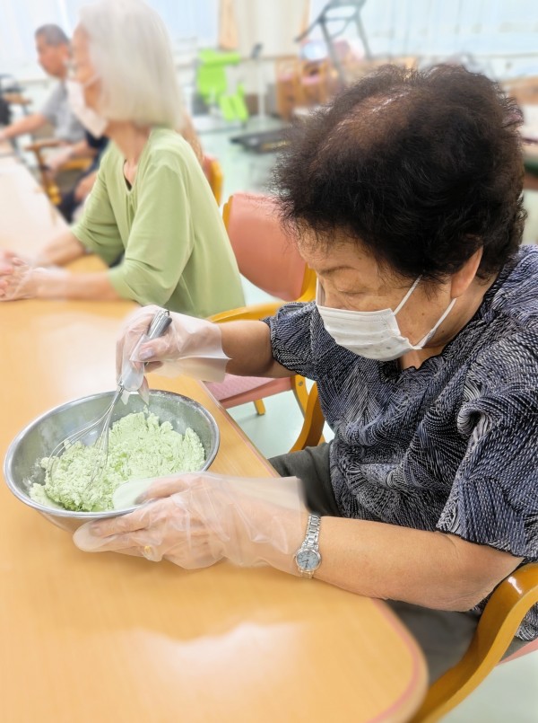 プレーン生地には粉末の黒糖のみ、抹茶入り生地には黒糖ときな粉を入れて作っていただきました♪