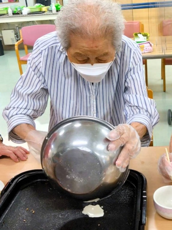 生地が出来上がったらホットプレートやフライパンで焼いて頂きました。