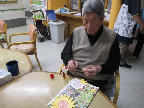 入居者様にもひまわりを作って頂き、ホームの壁に飾りました♪