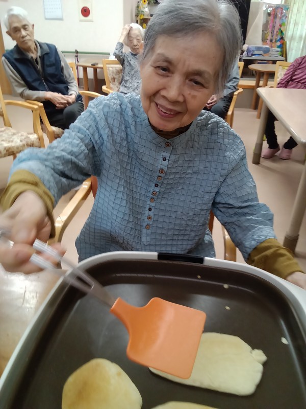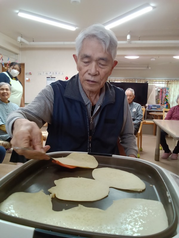 おやつにクレープを作り、焼く作業を手作て頂きました。