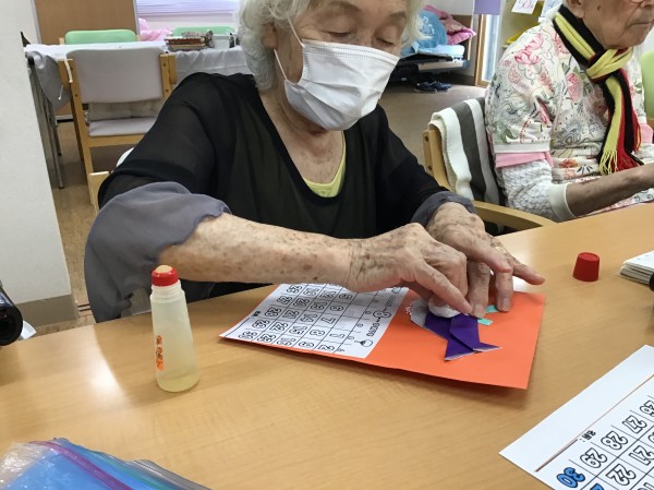 季節に合った、折り紙を作りそれを貼り付けて…。