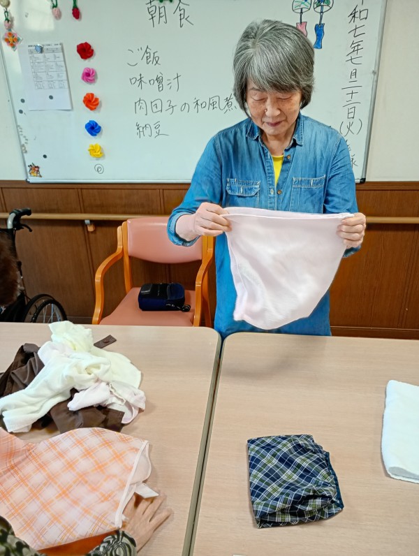 今回のブログでは朝早くから洗濯物を畳むのを手伝ってくださるご利用者様の様子を見せします♪♪
