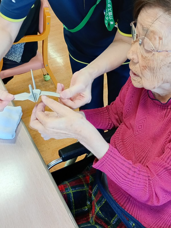 折り紙名人のご利用者様は他の方が上手に鶴を折ると盛大に拍手をし褒めてくれます♪