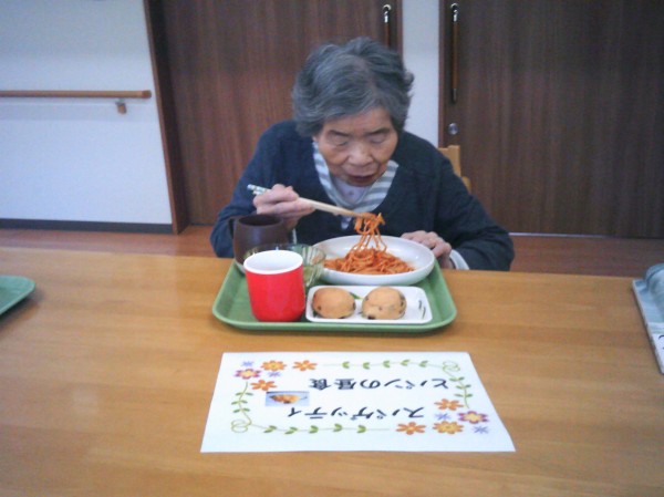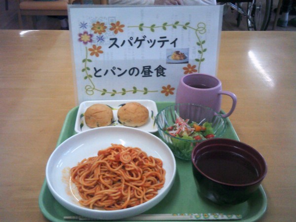 今日は1階で パンとスパゲッティの昼食を作りました(^0_0^) 召し上がられているご様子をお知らせいたします!