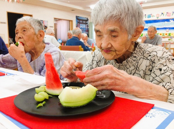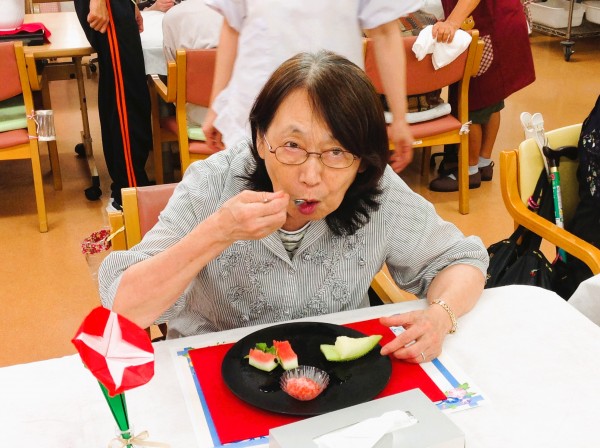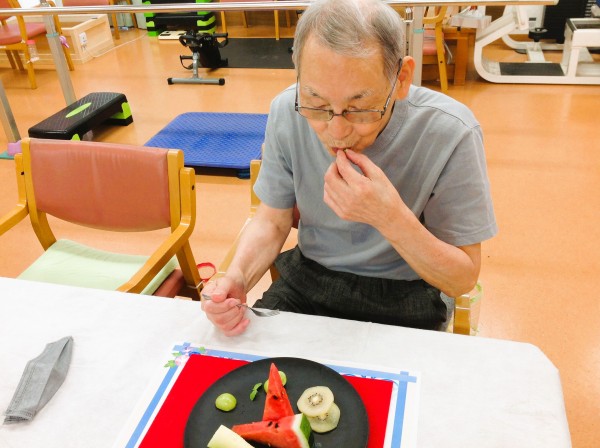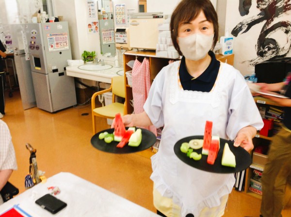 美味しく召し上がり、皆様に英気を養っていただきました♪「どれも美味しかったけど、スイカが特に美味しかったね!」とお話されるご利用者様もいらっしゃいました。やはり今の時期は冷たいものが一番ですよねー
