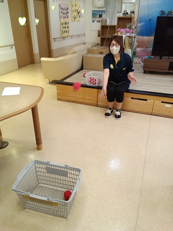 ご利用者様、職員もかつてない集中力で籠に目掛けて