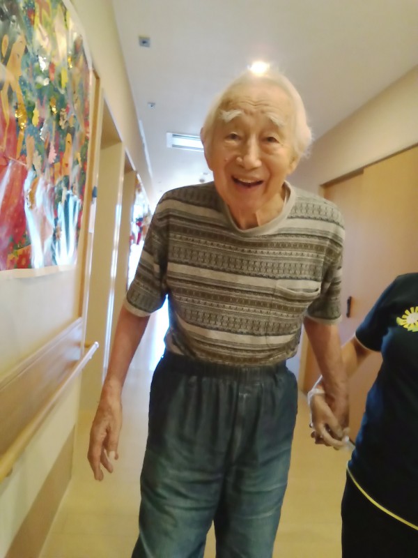 廊下を歩いて運動しましょう!っと職員と手をつなぎ一歩一歩ゆっくりと歩かれました(*'▽')