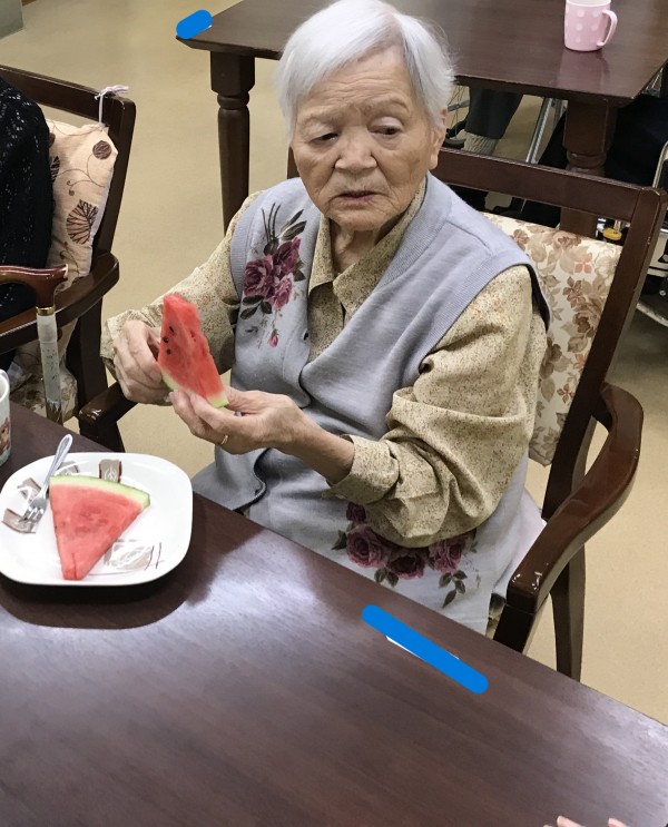 今月はおやつの時間にアイスクリームやスイカをいただきました
