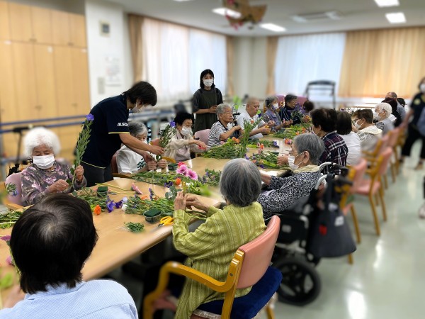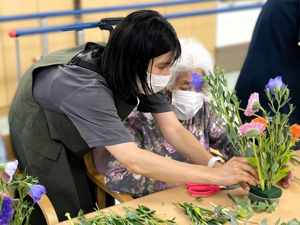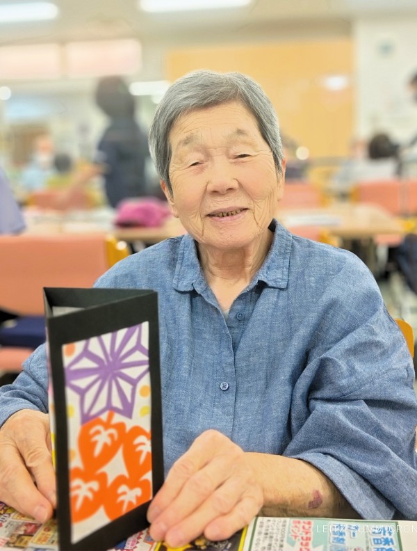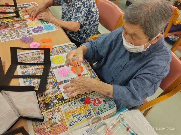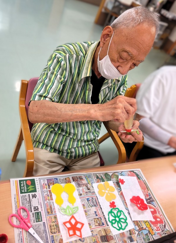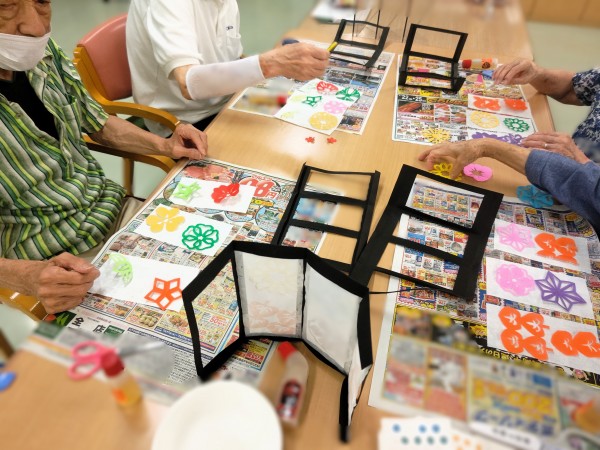 事前に切っておいた切り絵やシールを枠のサイズに切った半紙にお好きに置いて貼り付けていただき