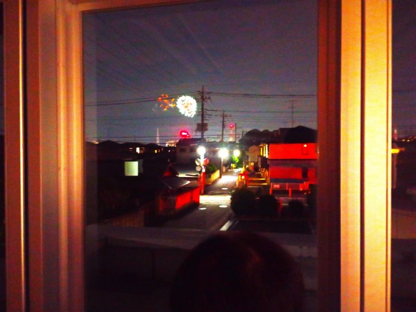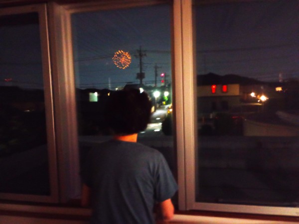 大きな花火の音に反応して、窓から外をのぞく