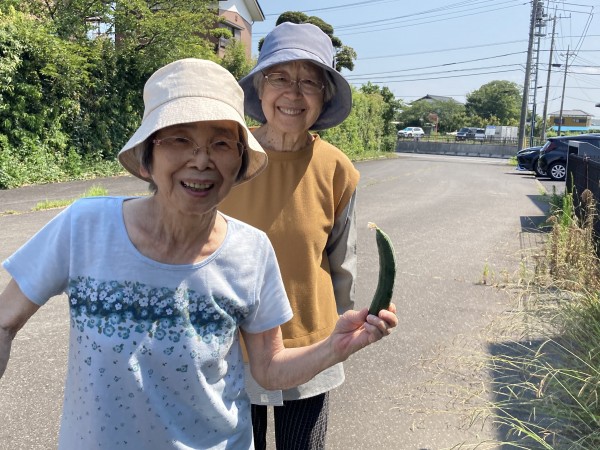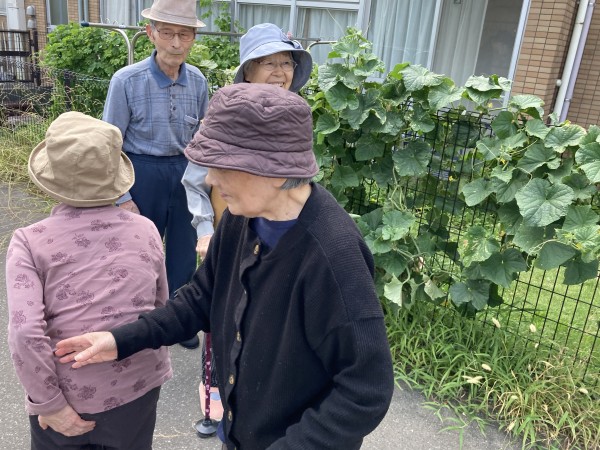 ゴーヤは段差がある箇所にあり、志願してくれた健脚2名がゴーヤも乱獲。「ゴーヤは苦くて河童も食べない」