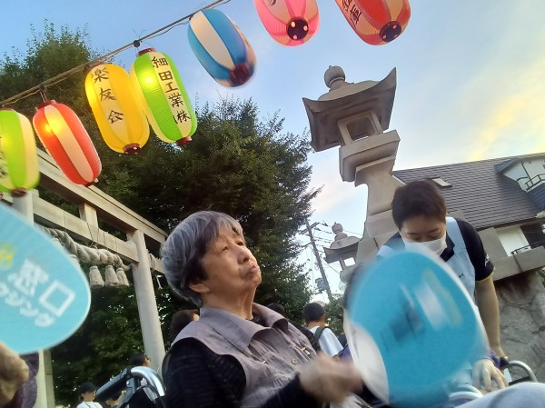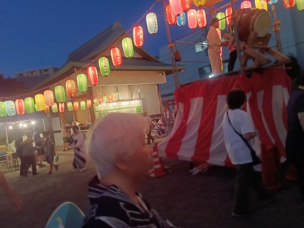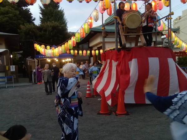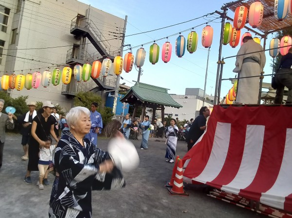 ホーム近くの神社での盆踊り。