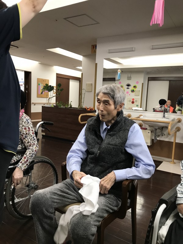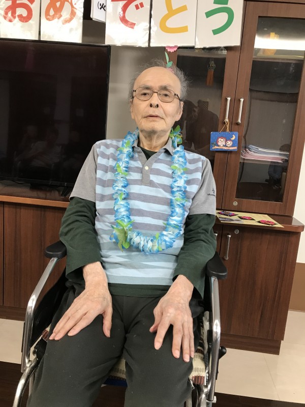 そんな中3階のお誕生日会がありました。7月は2名いらっしゃいました。皆さんの前で少し緊張されています。