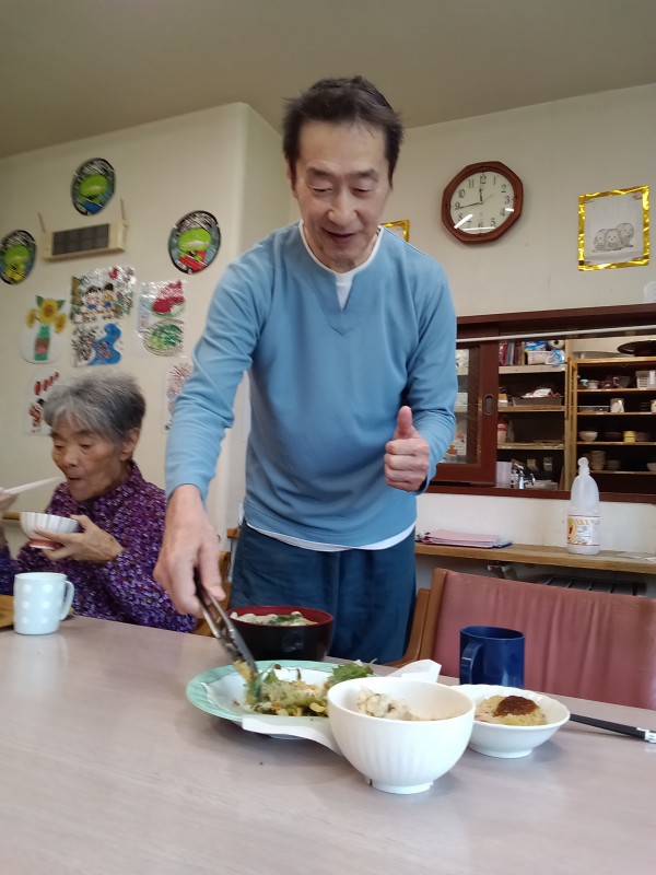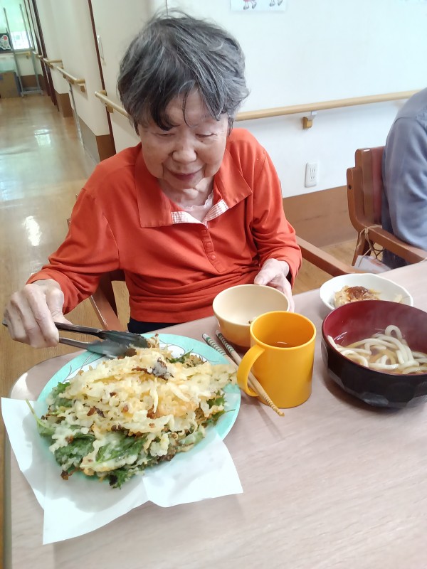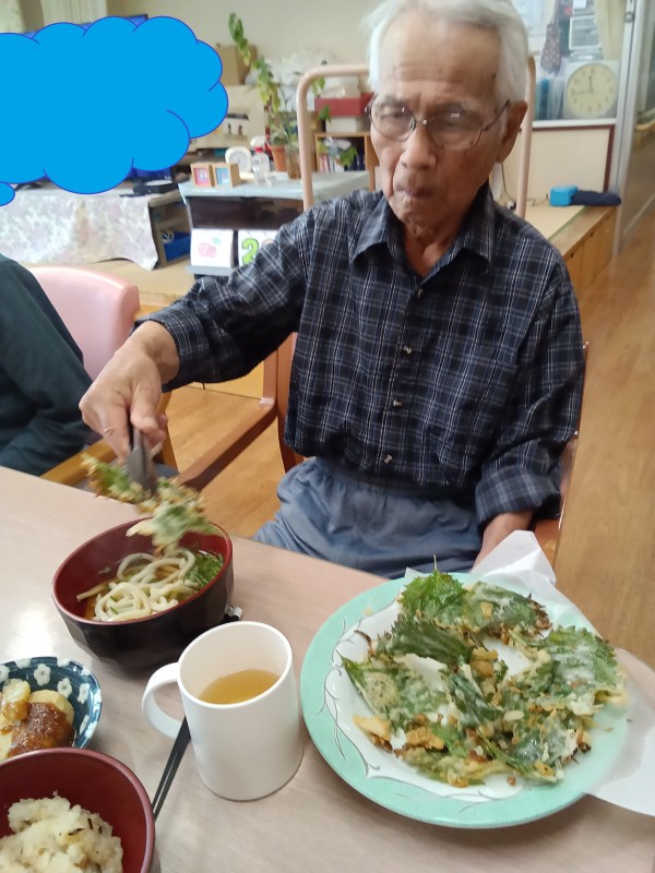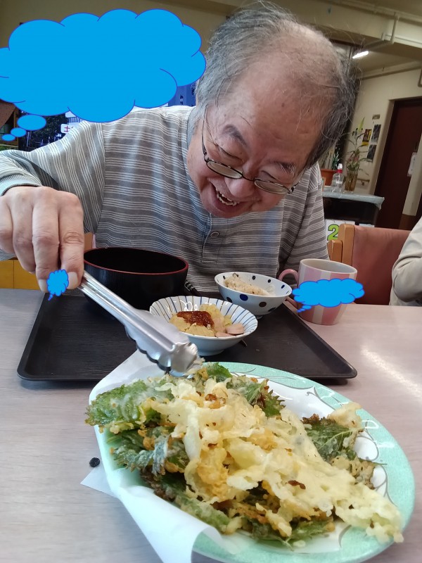 天ぷらの具材は、ホームの畑でたくさん採れた大葉です(*'▽')