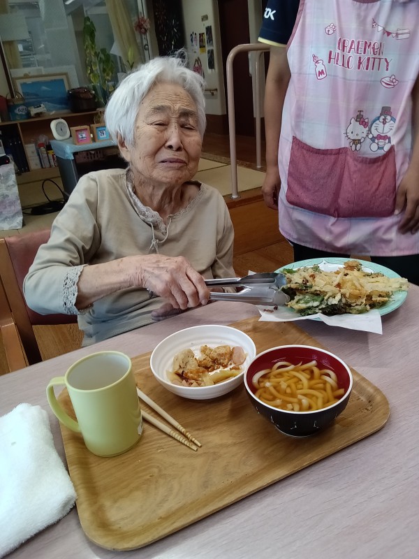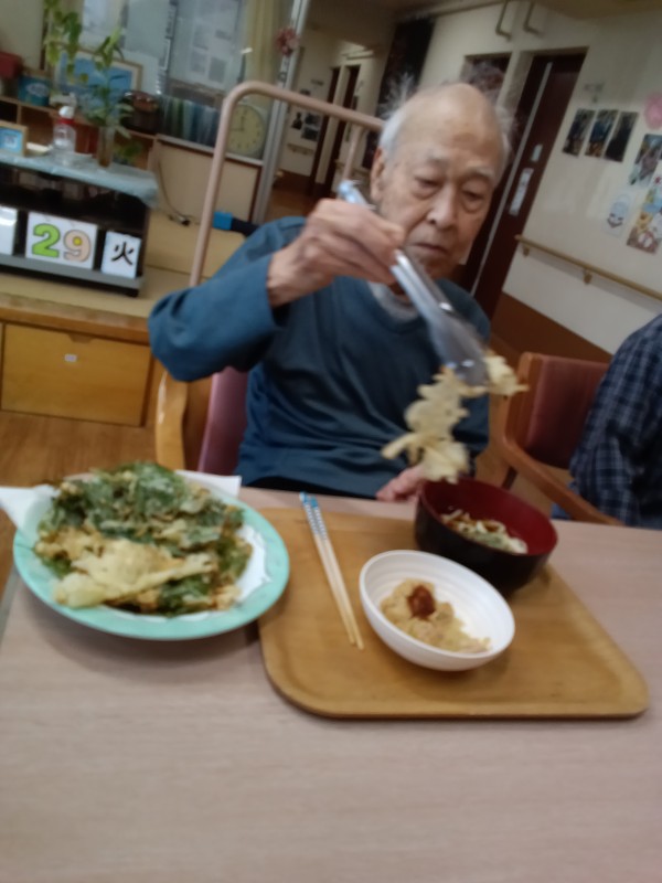 揚げた天ぷらを取っていただき、おいしく召しあがられました(^^♪