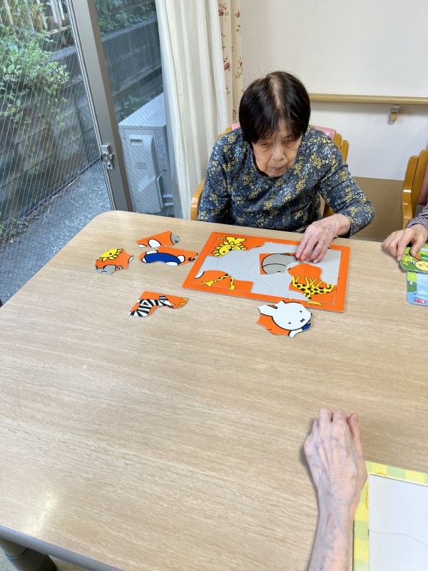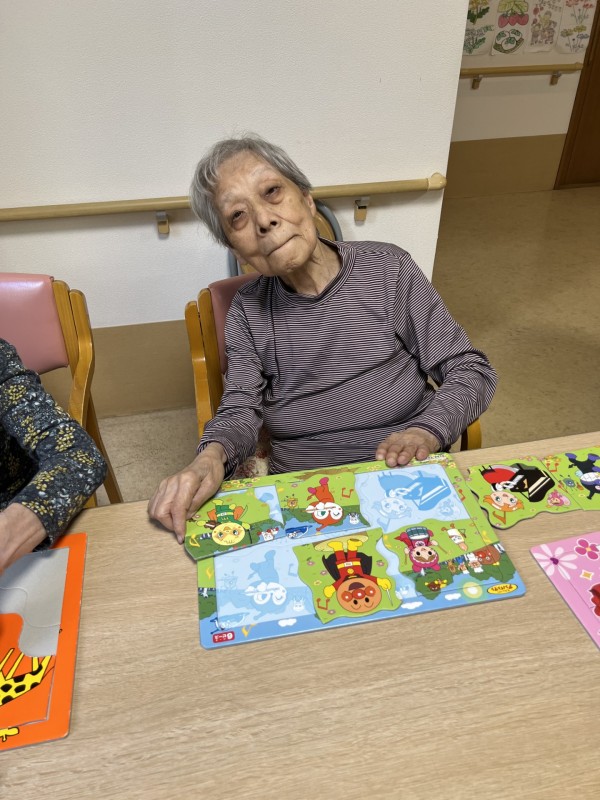 今回は1階の皆さんに脳トレーニングのレクにてジグソーパズルをしていただきました。