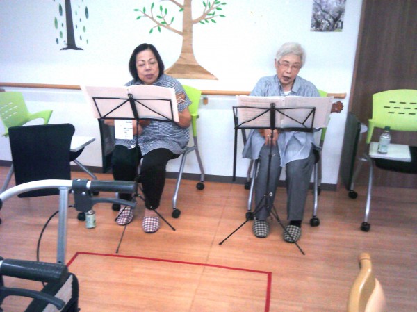 ウクレレ演奏に合わせて歌をうたっています( ^ω^)・・・ 知らない歌でも歌詞に合わせてい歌っています。