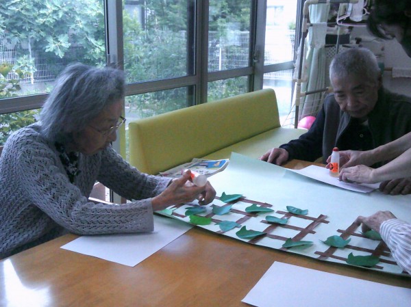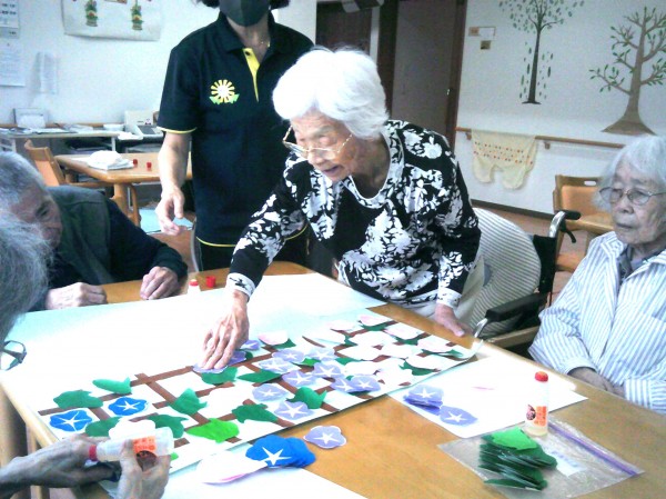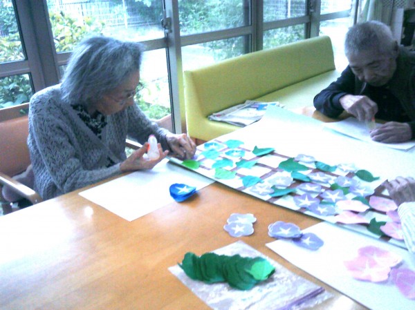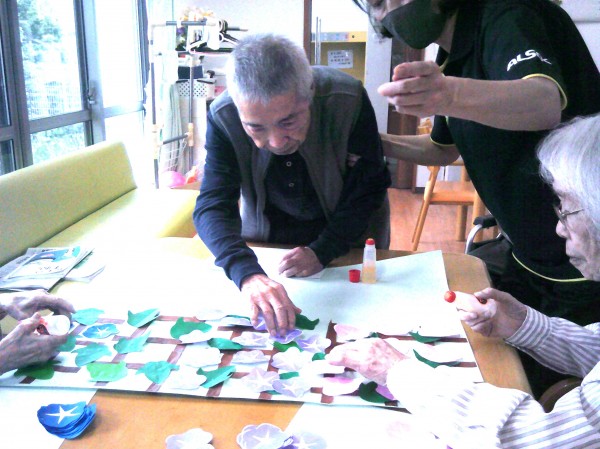 何処に貼るか考えながら朝顔の貼り絵に挑戦されています( ^ω^)・・・ 頑張っています~!!