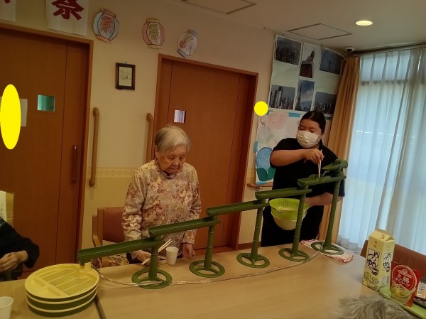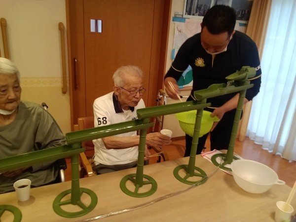 ご利用者様のご希望があり、流しそうめんをやりました。