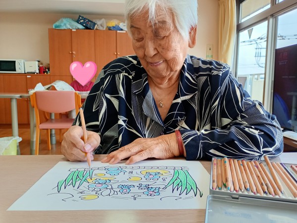 今回のブログでは3階ご利用者様が塗り絵をする様子をお見せします♪♪